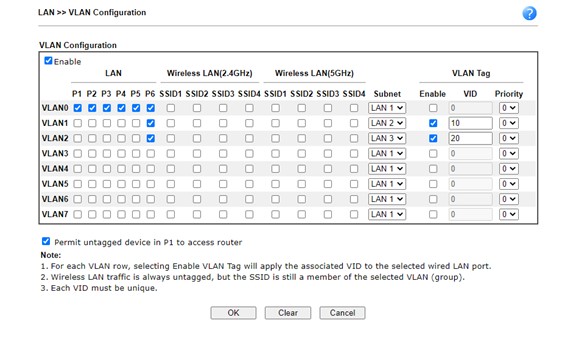 VLAN1 LAN2 data VID:10