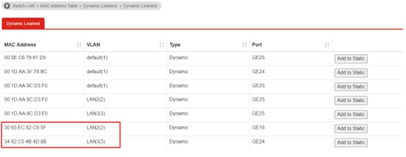 6. Μπορούμε να δούμε τι VLAN έχει ανατεθεί στη συσκευή στο Switch LAN >> MAC Address Table >> Dynamic Learned.