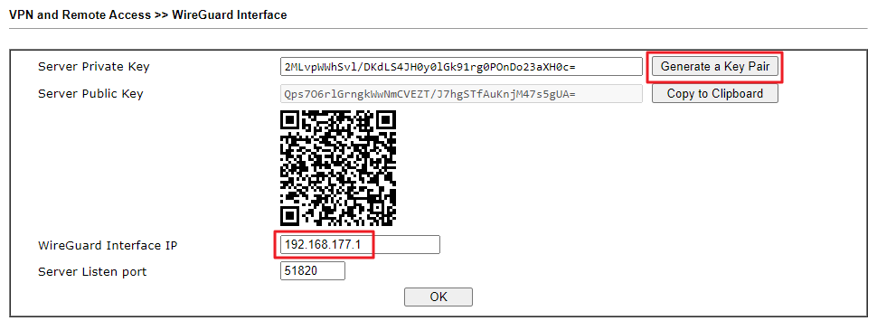 • Εισαγάγετε το WireGuard Interface IP. (Μπορούμε να χρησιμοποιήσουμε το LAN IP του Vigor Router ως WireGuard Interface IP)