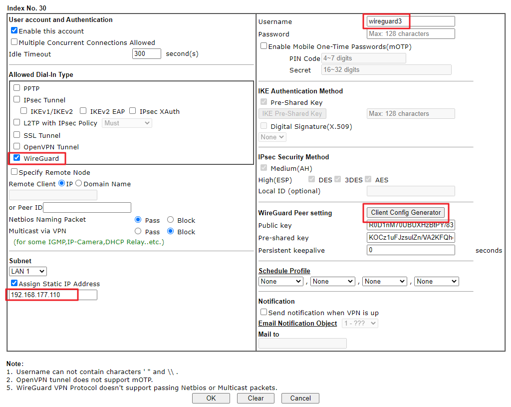• Επιλέξτε WireGuard ως Dial-In Type.