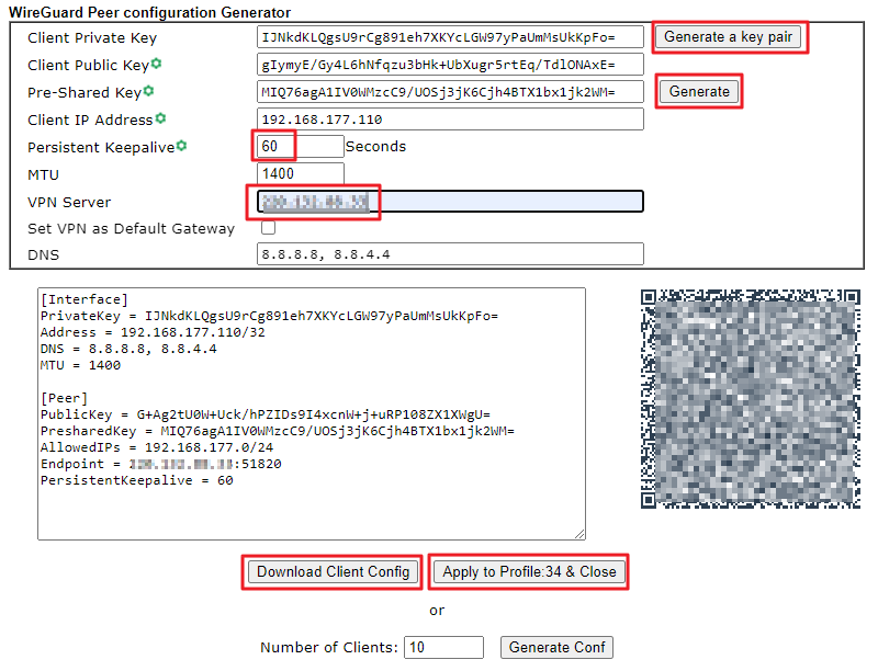 • Κάντε κλικ στο Generate για Pre-Shared Key (Optional).