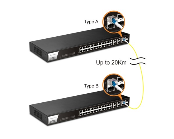 Στη συσκευασία περιέχεται ένας transceiver. Για την ορθή λειτουργία απαιτείται η αγορά και του DrayTek DAM-FX10-20K-A.